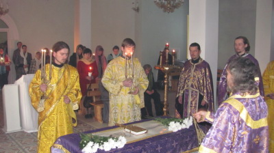 April 22, 2011, on the Great Friday in the Cathedral of Transfiguration of Lord of the Ukrainian Autocephalous Orthodox Church Canonical, Vasyliy, Bishop of Fastiv ministered the evening service with the rite of the Procession of the Holy Shroud.