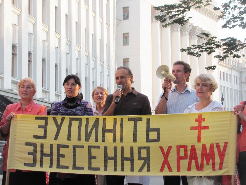 Orthodox Church Canonical held a protest near the Administration of President of Ukraine Yanukovych V.F., requiring from a guarantor of the Constitution to protect the right of the community of the UAOC-C to freedom of religion - to stop the demolition of the temple of Transfiguration of Lord and to provide registration of the Orthodox community.