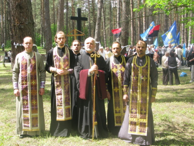 20 May 2012, on the Day of All-Ukrainian Sorrow in commemoration of victims of totalitarian regime, the clergy and the faithful of the Ukrainian Autocephalous Orthodox Church Canonical took part in the mourning ceremonies in the suburb of Kyiv in Bykivnia wood, where the largest place of burying of mass victims of political repressions is situated in Ukraine. There was the place for special purposes of NKVD, where in the end of 1930s-1940s was the mass burying of shot and tortured people by Stalin rule. The tragedy of Bykivnia is very similar to the other crimes such as in Auschwitz, Buchenwald, Dachau, Babi Yar and Katyn massacre.
